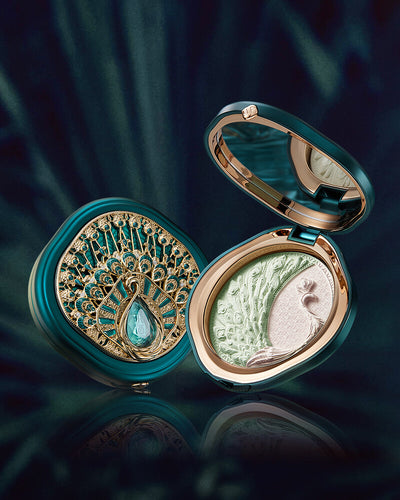 - 伝統の金糸工芸を用いた美しいケース、中も浮き彫り工芸を用い、生き生きとしたクジャクの姿をリアルに再現