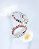Step02: ケース内の内ブタでパフを押し当てパフにパウダーをなじませる。